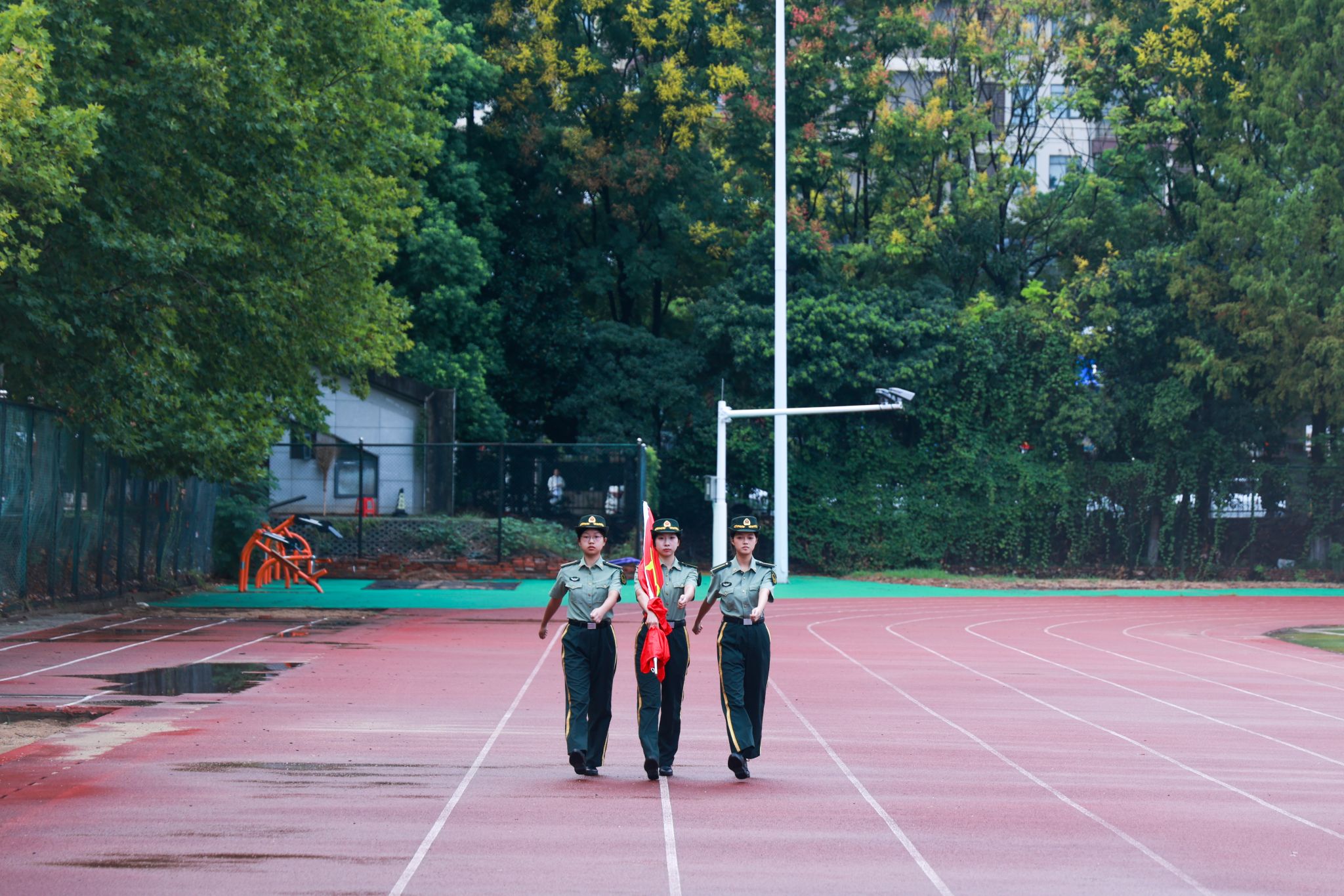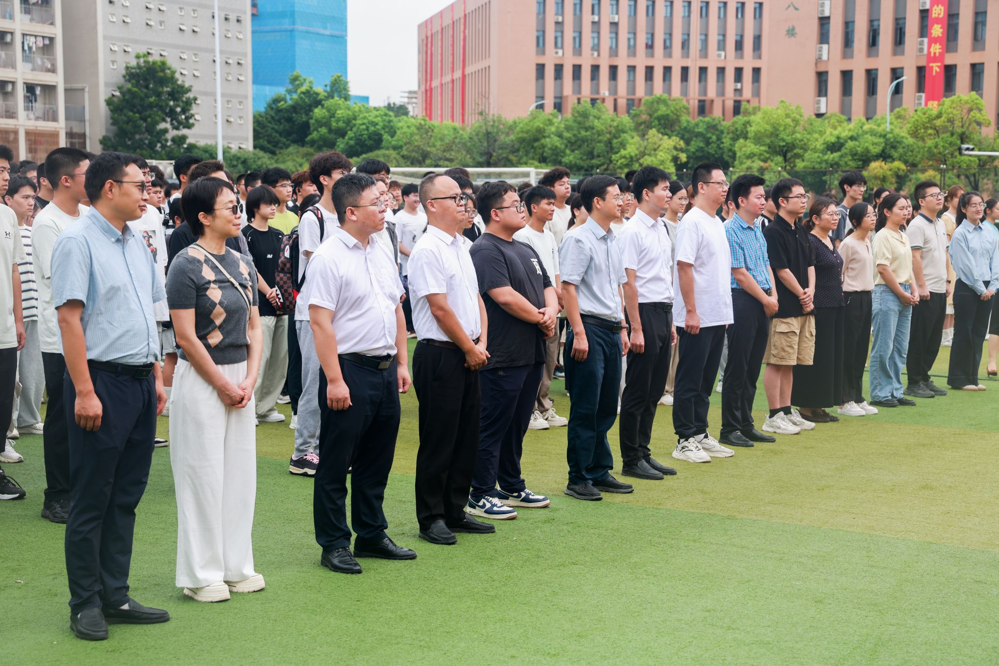 典礼在庄严的升国旗仪式中拉开序幕,全体师生齐唱国歌,肃立行注目礼。