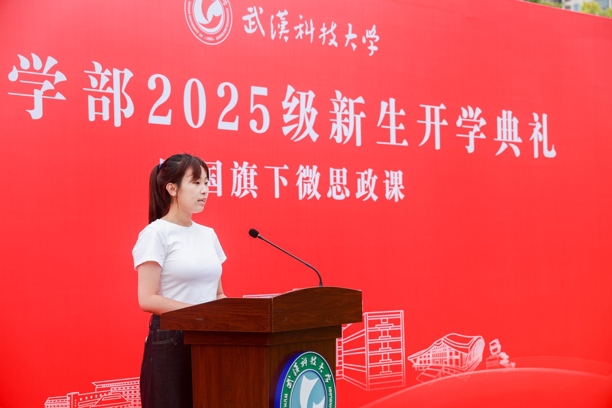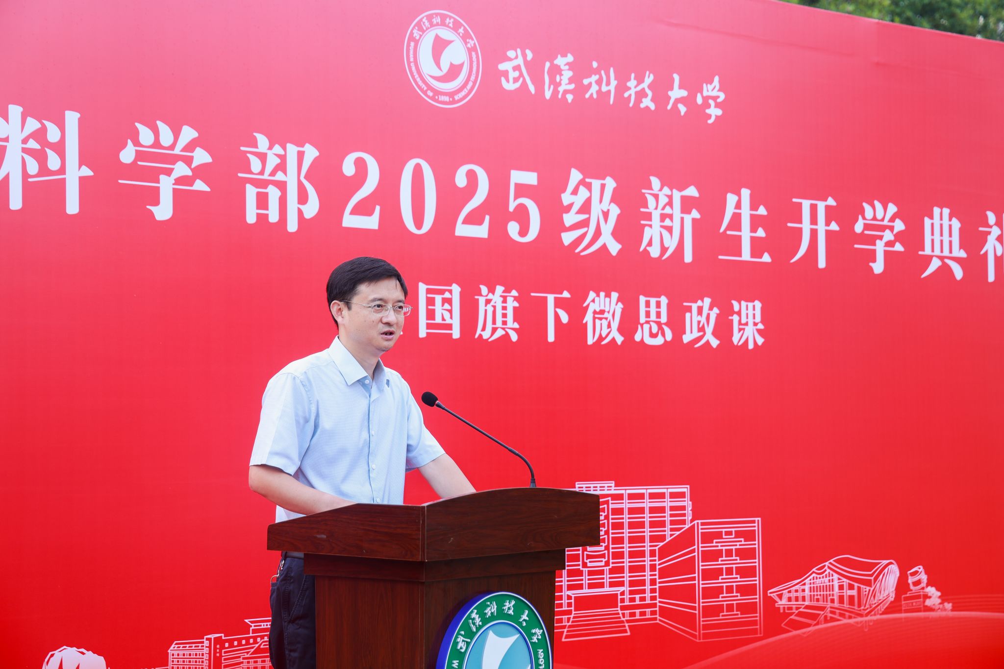 随后,单峙霖主讲题为“深学讲话精神,筑牢思想根基”的微思政课。他结合抗战胜利80周年的时代背景与习近平总书记相关重要论述,并从树立理想、锤炼本领、拓宽视野、投身实践四个方面鼓励新生成长成才。