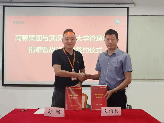 (通讯员:王鑫奕)为积极践行“校企同心、协同育人”核心理念,共同探索财经人才培养的创新路径,2025年6月17日上午,学院与上海高顿教育科技有限公司(以下简称“高顿教育”)在高顿教育武汉分公司隆重举行捐赠暨战略合作签约仪式。我院院长刘海兵,副院长黎精明,党委副书记赵磊,院长助理熊华平,会计系主任潘丹;高顿教育合伙人兼集团副总裁舒畅,高顿教育华中区人力资源总监高密,高顿教育武汉分公司财经项目总监张佳等领导出席此次会议,会议由张佳主持。
